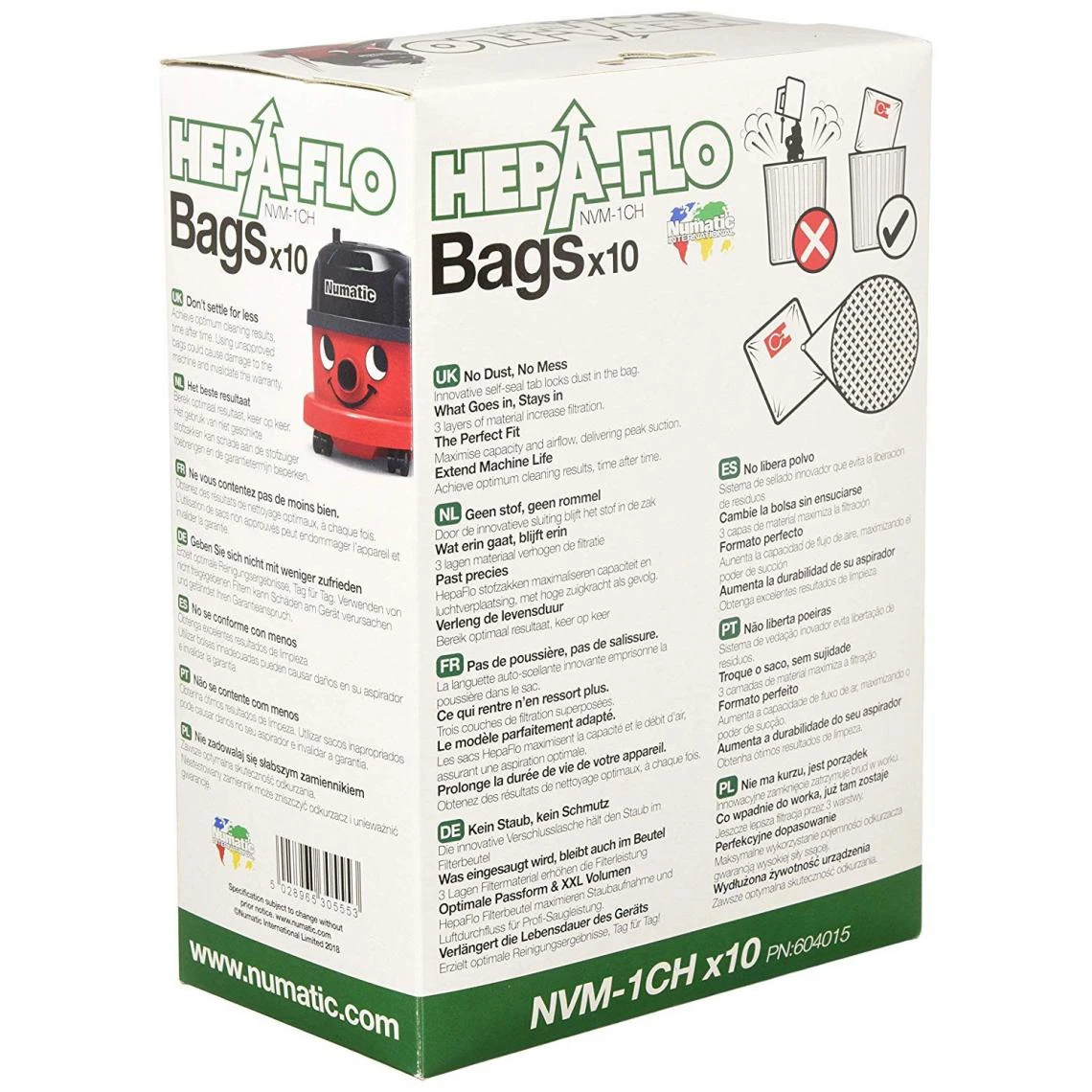Points forts Numatic Accessoire aspirateur 604015 – Lot de 10 sacs de 9L
